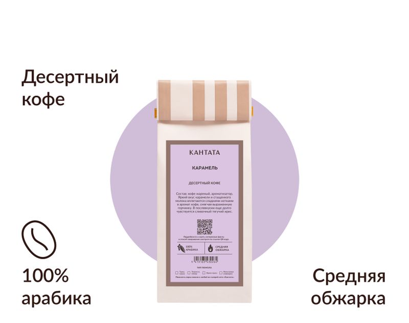 Ароматизированный кофе — идеальный вариант для тех, кто хочет получить насыщенный вкус, но не хочет добавлять в напиток сиропы и сахар. Яркий вкус карамели и сгущённого молока смягчает терпкие нотки бразильской арабики, а в послевкусии еще долго чувствуется сливочный тягучий ирис.