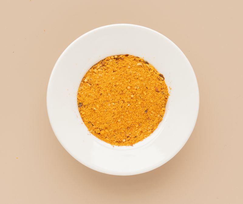 Состав: морская соль, тростниковый сахар, жареный чеснок (7%), семена горчицы (6%), кориандр, гранулированный лук (4%), семена кориандра, хлопья чили (3%), красный болгарский перец, кумин, паприка, черный перец (2%), диоксид кремния, масло паприки.