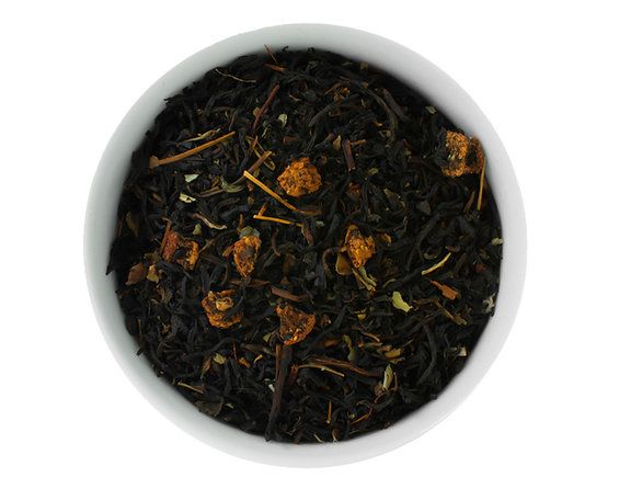 Ароматный черный чай с сушёными ягодками и листочками клубники.