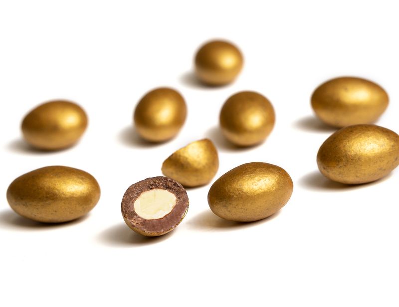 В основе нарядного драже — миндаль, покрытый молочным шоколадом с мускатным орехом.