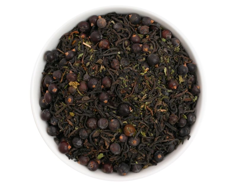 Использование ягод можжевельника в сборах и настоях известно испокон веков — все благодаря пользе. Ягоды можжевельника содержат эфирные масла и оказывают бактерицидное действие. Листочки перечной мяты дополняют его действие и смягчают напиток. Такой чай рекомендован в период простудных заболеваний!