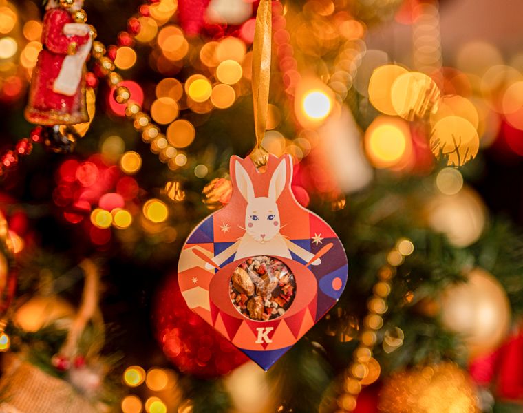 Символом Нового года стал очаровательный зайчик, он нашел отражение и в нашем медианте. Зайчик стучит в барабан и зовет всех праздновать. Нежный молочный шоколад с цельной фисташкой и сублимированной клубникой в виде медальона украсит любой подарок или новогоднюю ёлку.