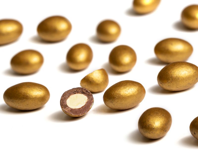 В основе нарядного драже — миндаль, покрытый молочным шоколадом с мускатным орехом.