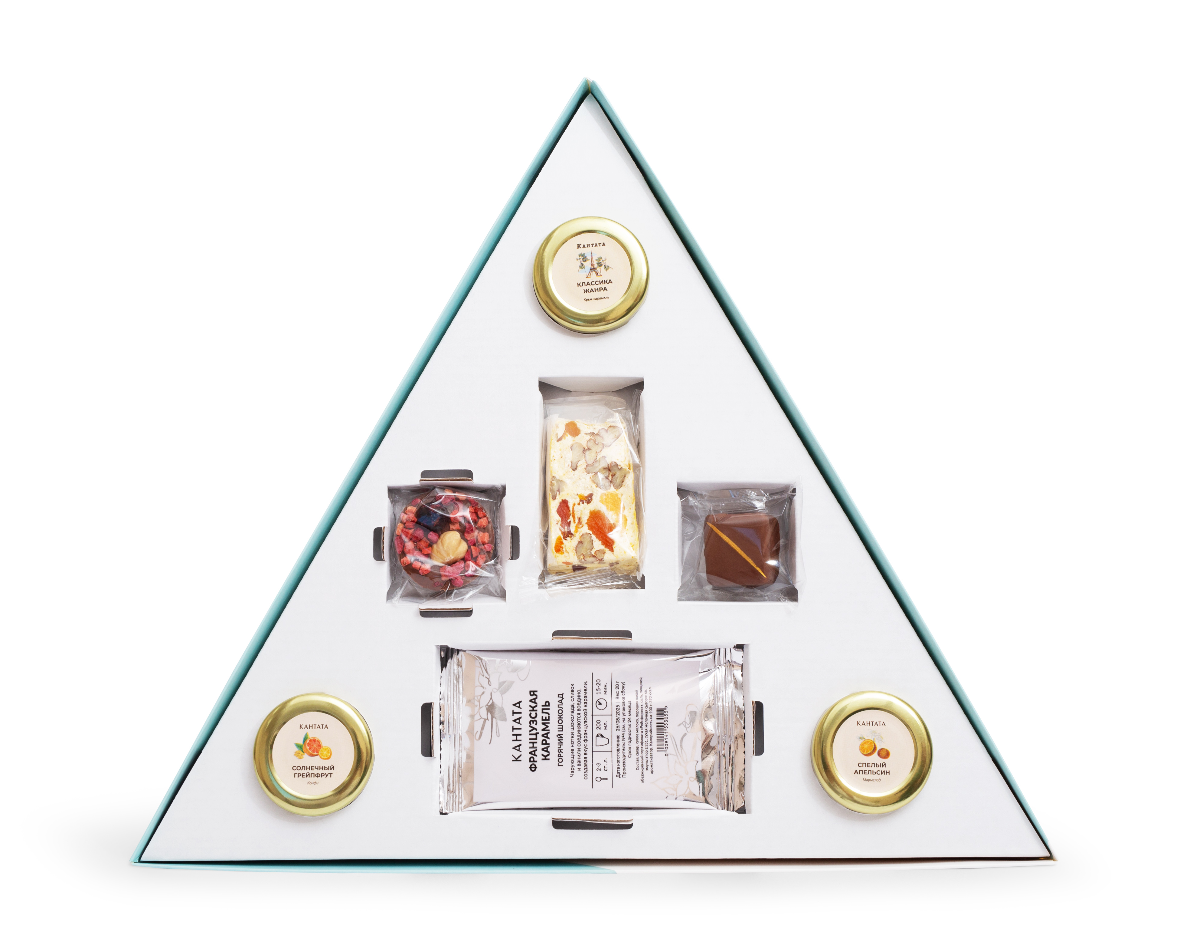2) Конфи «Солнечный грейпфрут», фруктовый конфитюр на основе цукатов грейпфрута и апельсина, с добавлением грецкого ореха, нестерилизованный с консервантом, 25 г. Состав: глюкозно-фруктозный сироп, цукаты грейпфрута (грейпфрут свежий, сахар, вода, стабилизатор: полидекстроза; пищевая добавка: сорбат калия; соль поваренная, регулятор кислотности: лимонная кислота), цукаты из апельсина (дольки апельсина, глюкозно-фруктозный сироп, сахар, регулятор кислотности: лимонная кислота; консервант: сорбат калия), сахар, орех грецкий, пищевая добавка: сорбат калия, регулятор кислотности: лимонная кислота, вода.