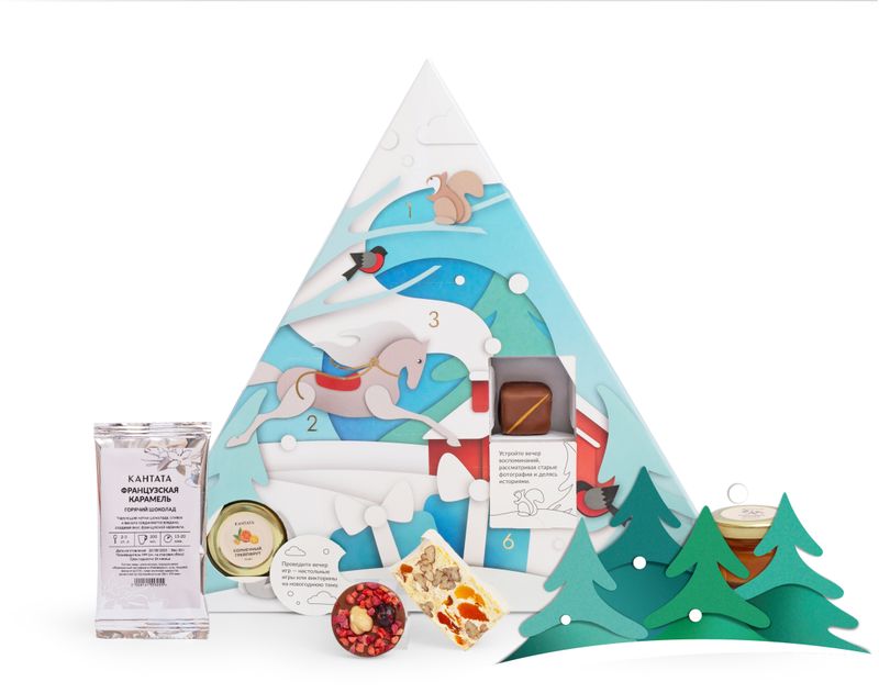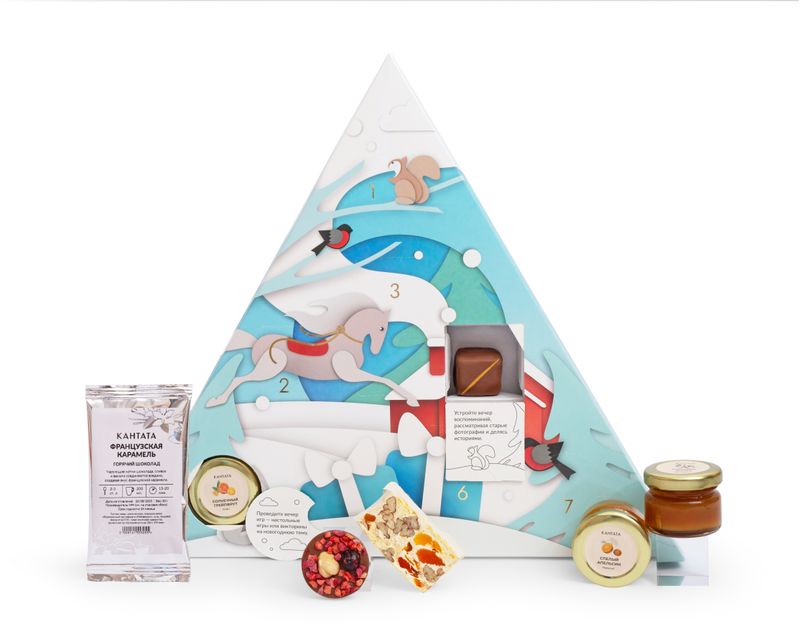 За каждым окошком вас ждёт маленький десерт из коллекции Кантаты - яркий и вкусный аккорд зимнего настроения: