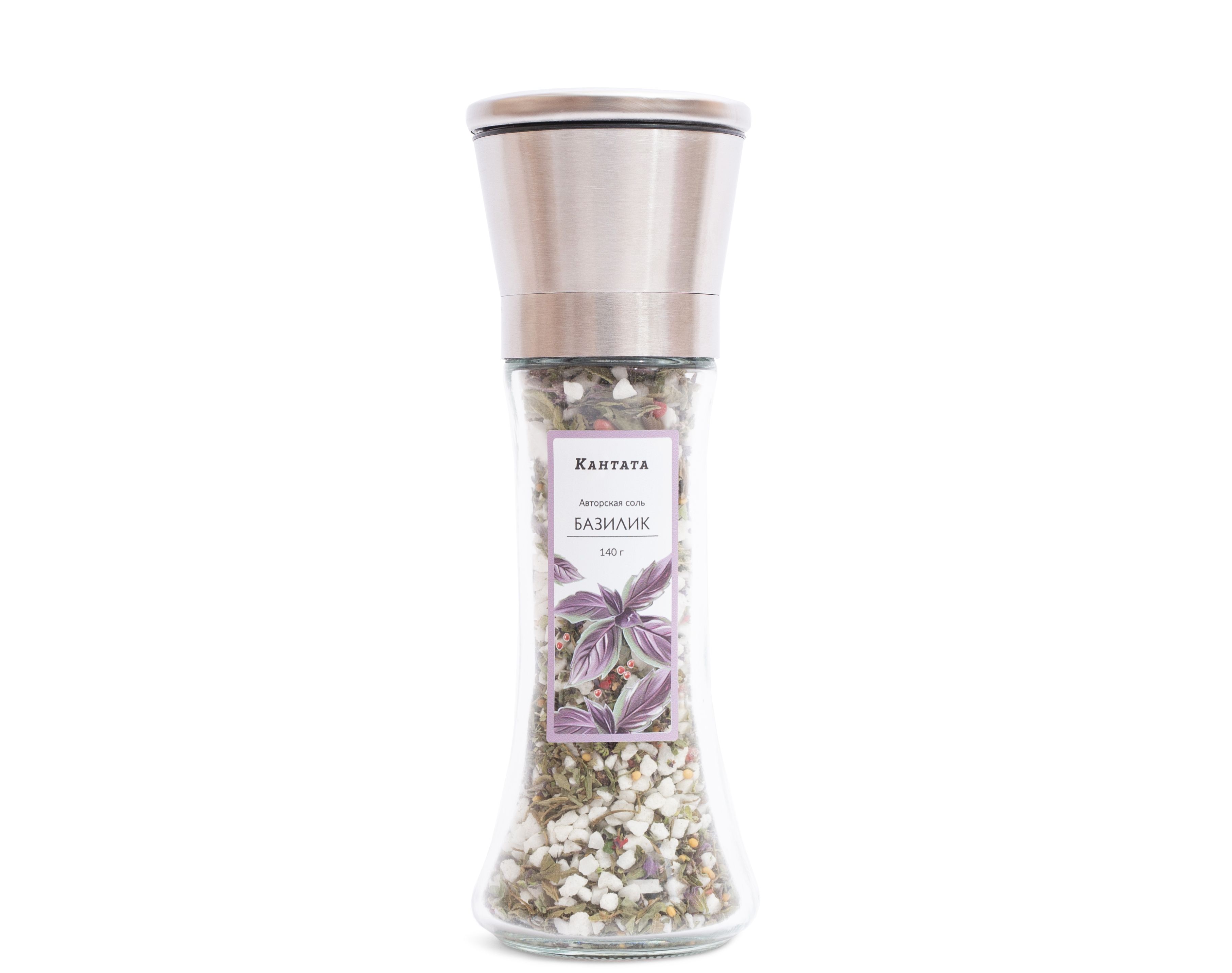 Соль «Базилик» отличается своей яркостью и богатством вкусовых оттенков. Базилик придает ей свежесть и легкость, орегано добавляет травяные нотки, шалфей вносит свою неповторимую пикантность, а семена горчицы и розовый перец создают приятное ощущение тепла и легкой остроты.