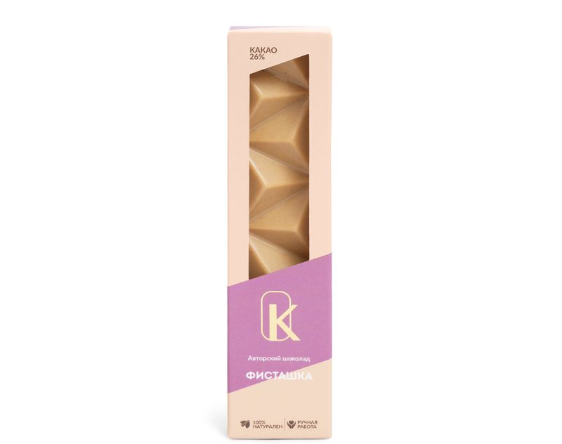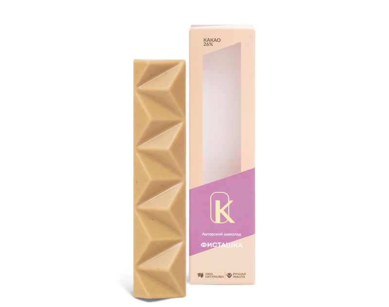 Авторский шокобар «Фисташка» — это десерт с французским шармом и выразительным орехово-сливочным вкусом. В основе — белый бельгийский шоколад и щедрая доля фисташковой пасты, благодаря которой текстура становится необычайно мягкой, гладкой и почти кремовой. Эта плитка не ломается с привычным хрустом — она тает, раскрывая теплые сливочные оттенки и натуральный вкус фисташки, дополненный лёгкой розовой солью.