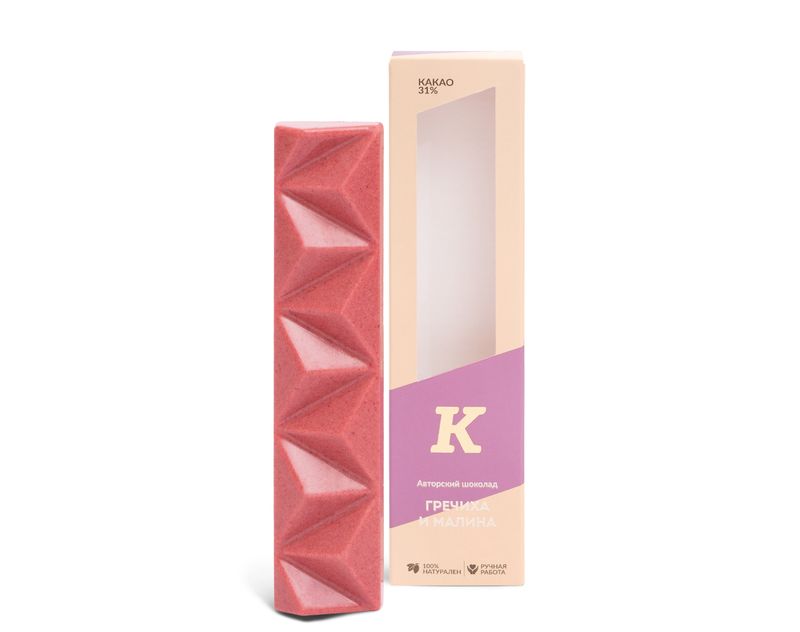 Авторский гречишный шоколад с малиной создан по уникальной рецептуре от кондитеров шоколадной фабрики. В яркой плитке гармоничной сплелись гречишный чай, сублимированная малина и нежнейший бельгийский белый шоколад. Вкус напоминает воздушный десерт на йогуртовой основе. Каждый кусочек все глубже погружает в «пену рассветных облаков», но не дает утонуть в ней, благодаря деликатной, приглушенной бархатистости гречишного чая.