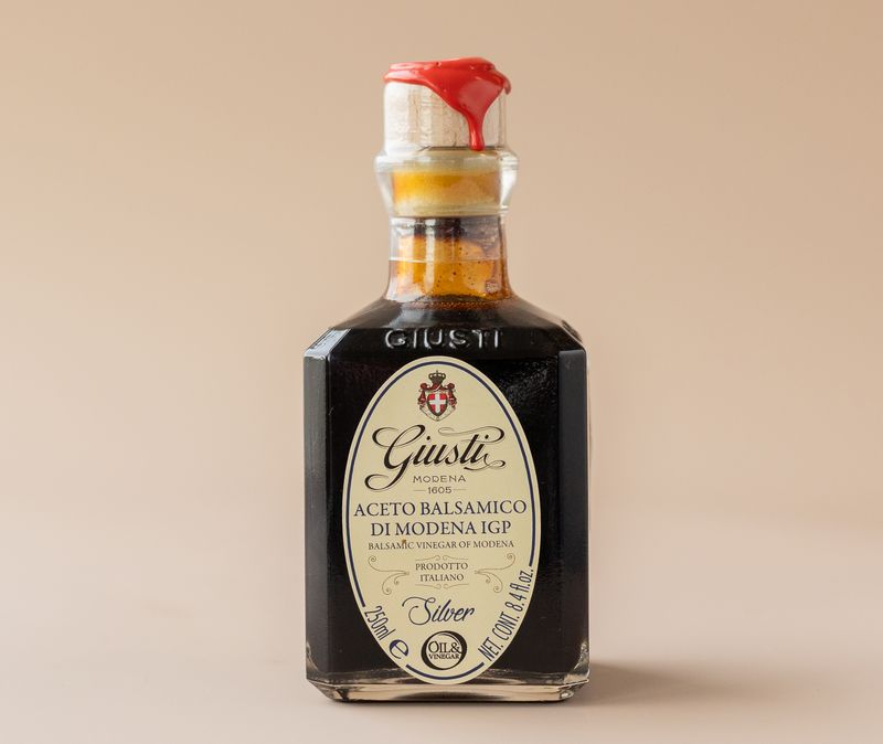 Бальзамический уксус «Серебряный IGP» производится компанией Джузеппе Джусти, самым старейшим производителей бальзамических уксусов в Модене. В настоящее время его возглавляет 17-е поколение семьи. Возраст бочек, в которых созревает бальзамический уксус, насчитывает сотни лет. Используются бочки из дуба, ясеня, вишни, шелковицы и можжевельника.
