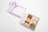 6 пирожных в упаковке из белого картона, 1 нанесение логотипа или любого другого изображения и бирка с вашим логотипом.