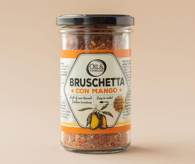 Брускетта — микс сушеных томатов и ароматных трав. Это наиболее сладкая вариация в коллекции брускетт Oil&Vinegar. Кусочки настоящего манго добавляются в смесь, чтобы придать пикантную сладость классической брускетте.