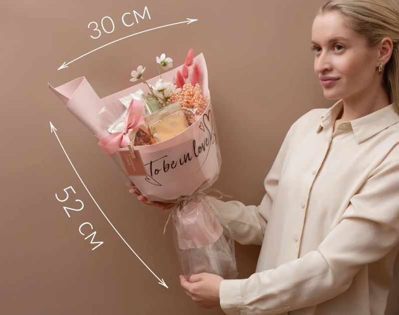 Воздушный и романтичный букет с акцентом на мягкие вкусы и тактильные ощущения. Зеленые чаи с ягодными и цветочными нотами сочетаются с черным чаем с десертным характером, а кофе добавляет композиции плотности и уюта. Белый шоколад с орехами и ягодами усиливает сладкое настроение, а светлая флористика с цветами сливы и розовыми акцентами делает букет особенно трогательным и эмоциональным.