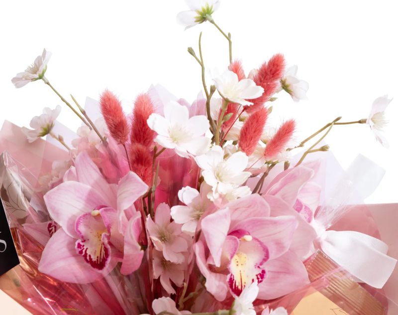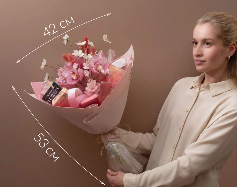 В качестве украшения используются живые цветы и искусственные вставки. Цвет живых растений может отличаться.