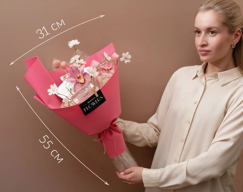 В качестве украшения используются искусственные вставки. Цвет живых растений может отличаться.