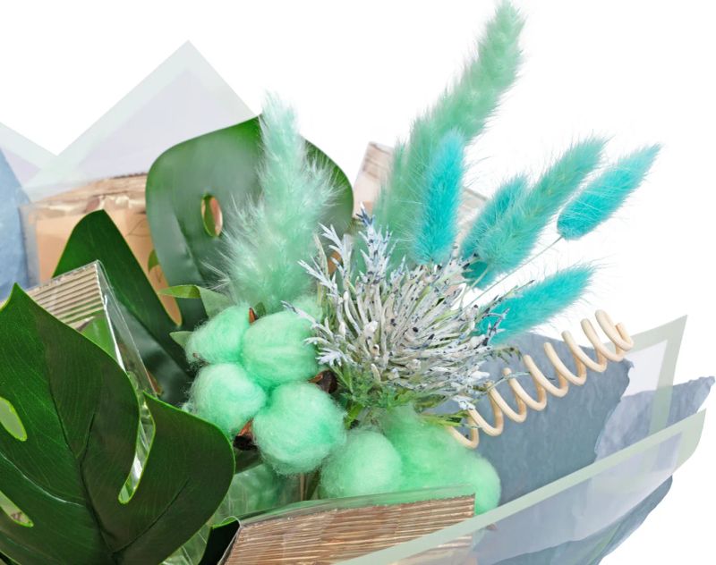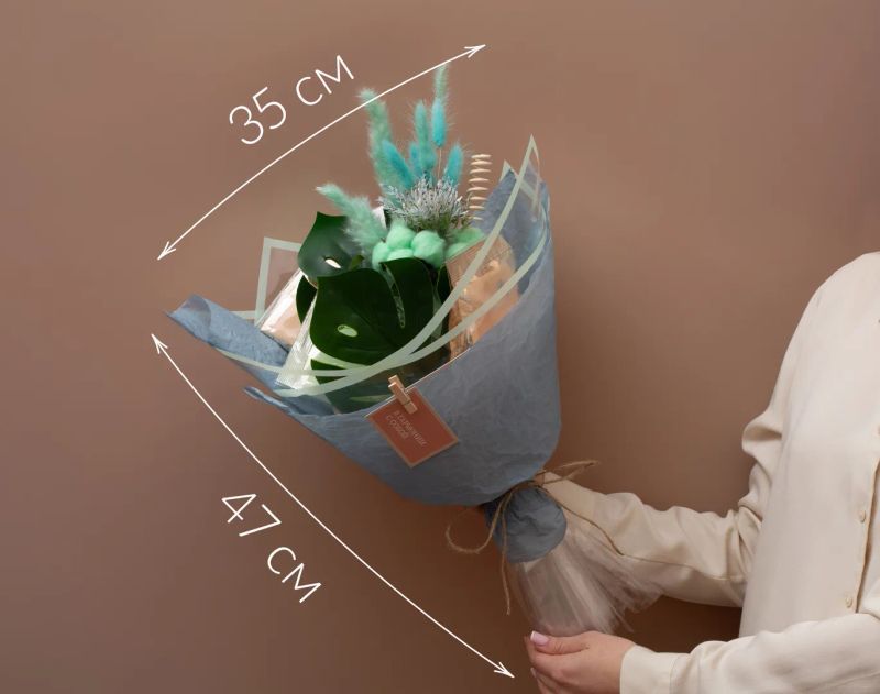 Воздушный и многослойный букет с ощущением легкой сказки и природной гармонии. Черный чай с глубокими и пряными оттенками сочетается с зеленым чаем с освежающим цитрусовым характером, создавая сбалансированную и выразительную чайную основу. Кофе «Ореховый брауни» и ягодные ноты добавляют мягкий десертный акцент, а сложная флористическая композиция с эрингиумом, хлопком, сухоцветами и зеленью усиливает ощущение живой акварели, где каждый элемент дополняет другой.