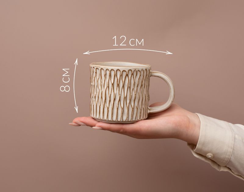 Керамическая чашка ручной работы в уютном дизайне, напоминающим десерт – меренгу. Налейте в нее ваш любимый чай или кофе и наслаждайтесь каждым ароматным глотком!