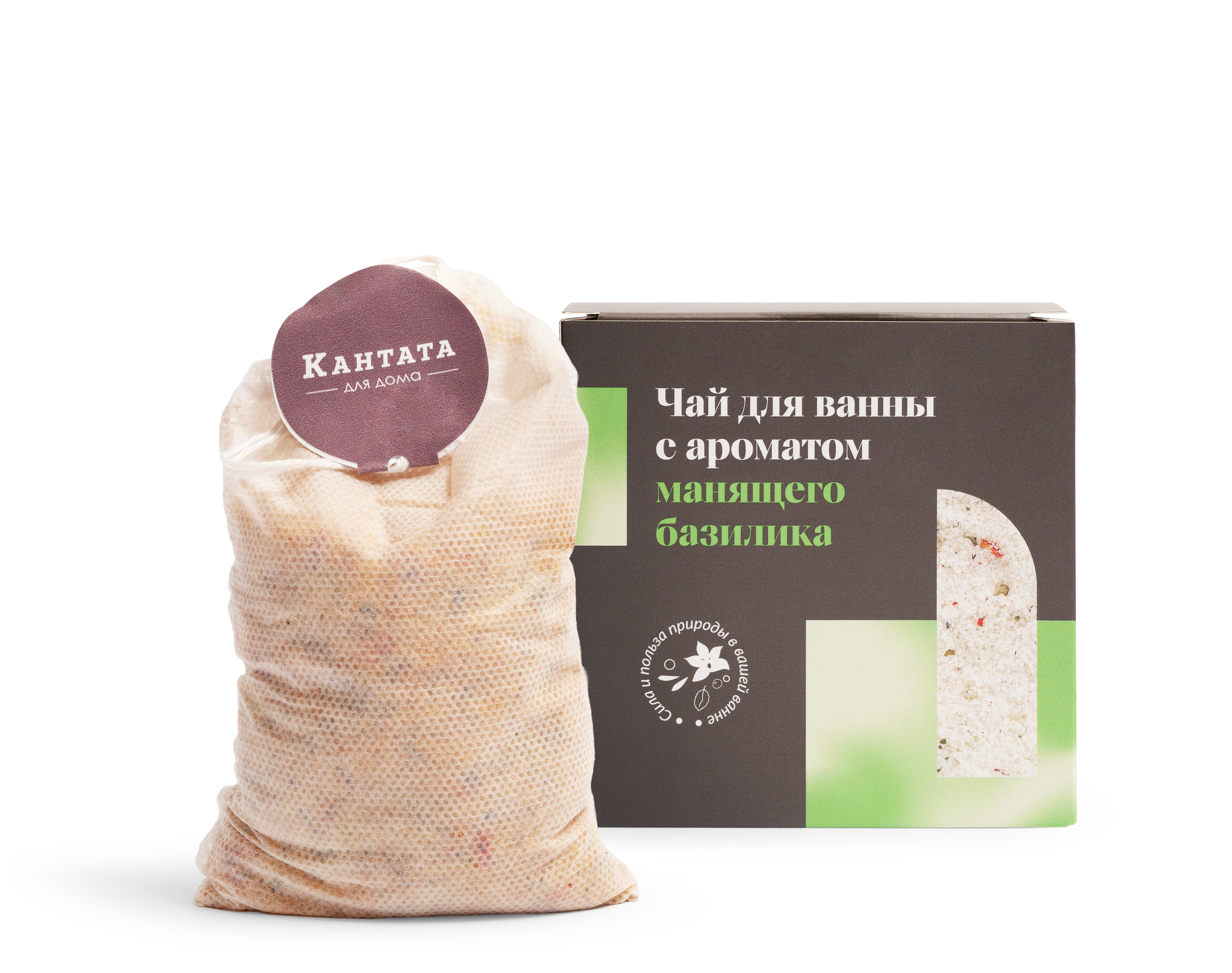 Состав: каменная соль, английская соль, сушеные листья базилика, цветы граната, ягоды смородины, парфюмерная композиция.