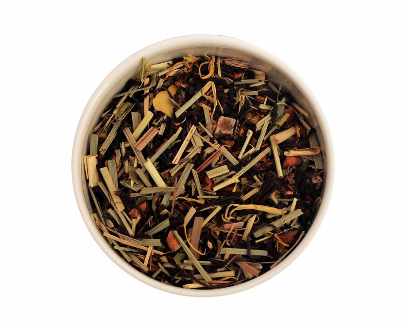 Авторский купаж чёрного чая и ройбоса с яблоком, лемонграссом, ананасом и дыней. Напиток с ярким вкусом и летним настроением.