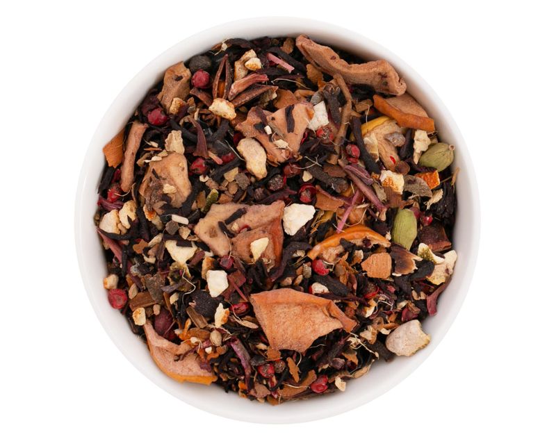 Состав: гибискус, яблоко, апельсин, имбирь, корица, бадьян, гвоздика, кардамон, розовый перец.