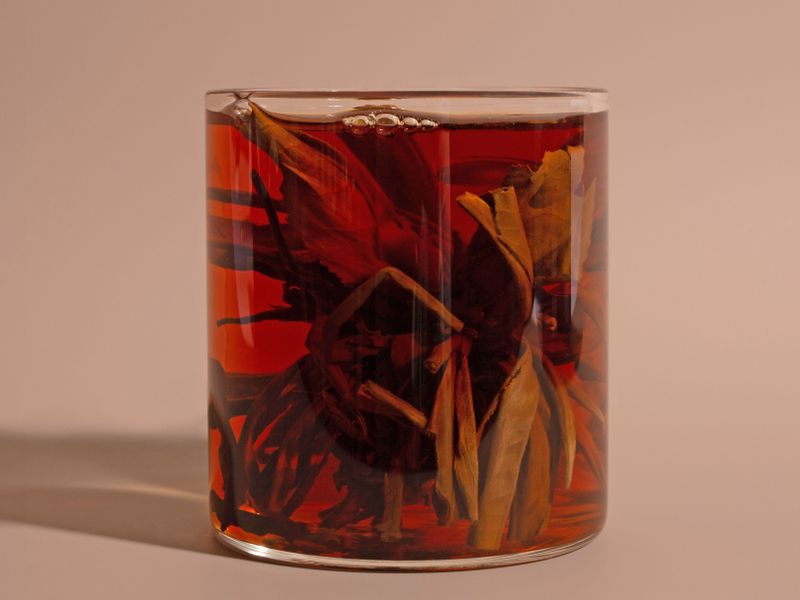 Настой получается прозрачный, красно-коричневого оттенка.