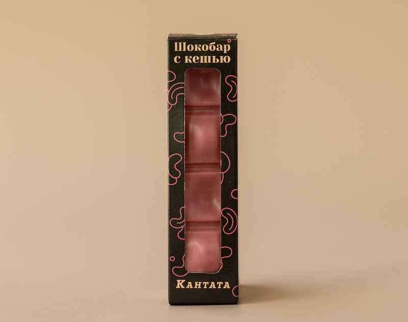 Компактная плитка необыкновенного рубинового шоколада с начинкой из пасты кешью. Элегантное сочетание редкого десерта и плотного, но лёгкого вкуса орехов.