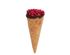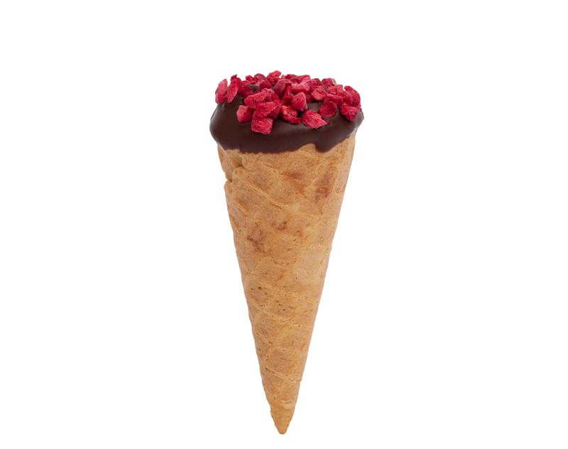 Для декора применяется сублимированная малина, придающая десерту ягодное послевкусие. Каждый рожок украшается вручную, поэтому все изделия уникальны.
