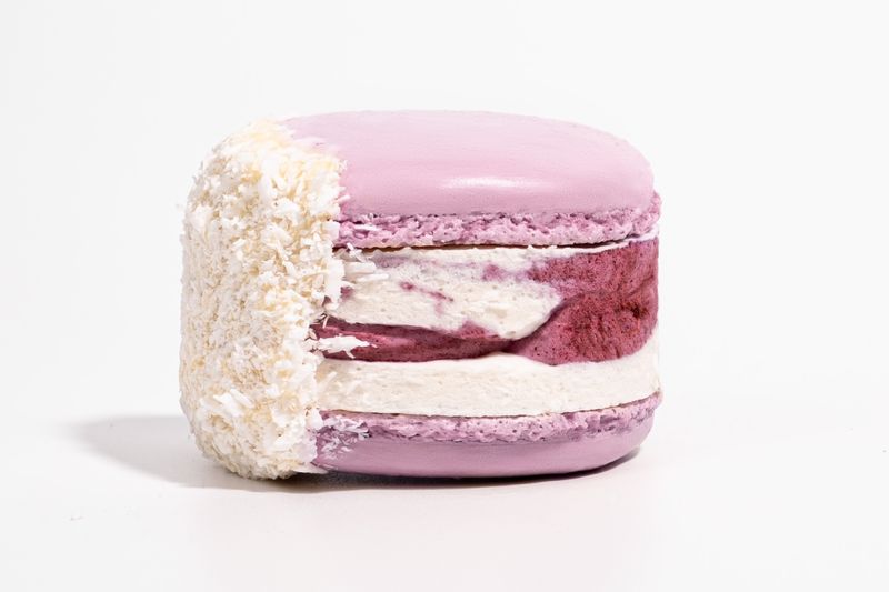 Состав: сливки 33% (нормализованные сливки, стабилизатор каррагинан), сахар, белок яичный, шоколад белый (какао-масло, сахар, цельное сухое молоко, сухая молочная сыворотка, лактоза, эмульгатор (e322, e476), натуральный ароматизатор), миндальная мука , кокосовое молоко (переработанная мякоть кокосового ореха 70%, вода, эмульгатор e435 0,05%), черника с/м, пюре черная смородина, кокосовая стружка, масло подсолнечное рафинированное, загуститель (e415, e407), краситель пищевой (e131, e124), регулятор кислотности (цитрат натрия).