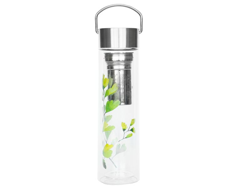 Дорожная кружка с двойными стенками и неопреновым чехлом, украшенная листьями легендарного растения гинкго, позволит вам наслаждаться вкусом чая дома, в поездке, на работе.