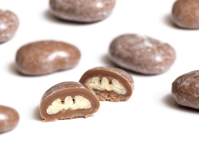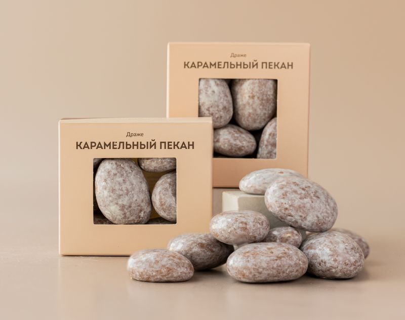 Состав: молочный шоколад с карамелью (сахар, какао-масло, сухое цельное молоко, какао тертое, сухое обезжиренное молоко, карамелизованный сахар, эмульгатор: соевый лецитин; искусственные ароматизаторы, краситель: экстракт паприки; натуральный ароматизатор: ваниль), белый шоколад (сахар, какао-масло, сухое цельное молоко, эмульгатор: соевый лецитин; натуральный ароматизатор: ваниль), орех пекан, глянцеватель: капол; краситель: диоксид титана. Содержит орехи, молоко, сою. Может содержать следы продуктов, вызывающих аллергию.
