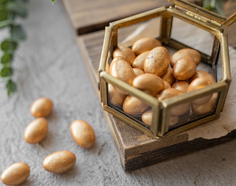 Натуральный состав драже «Мускат Голд» делает его красивым и полезным лакомством для всех возрастов. Миндаль помогает при умственных нагрузках, оказывает антиоксидантный эффект и является хорошим подспорьем для поддержания зрения.