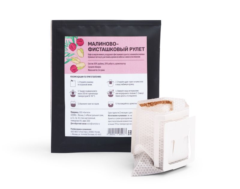 Купаж раскрывается ароматами воздушного фисташкового бисквита, сливочного крема с маскарпоне и кисло-сладкой свежей малины, придающей напитку яркость и свежесть. Финальный штрих — изысканная нота бренди, словно в пропитанном ликёром десерте.