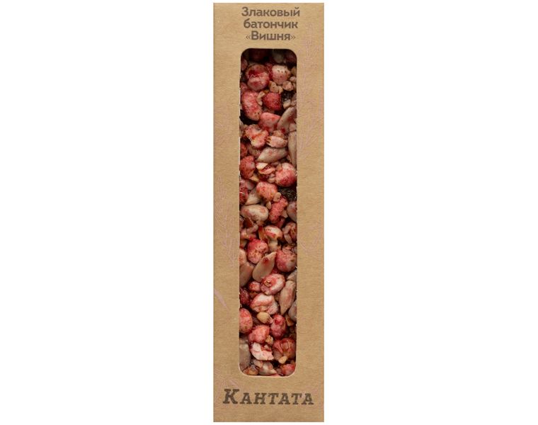 Этот злаковый батончик вобрал в себя сочную сладость вишни и клюквы, скрашенную мягкой кислинкой этих ягод, пользу миндаля и эффектность взорванной гречки. Десерт дополнен пряным нюансом корицы.