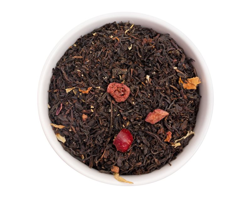 Состав: чёрный чай, красная смородина, клюква, лепестки белого гибискуса и розы, ароматизатор.