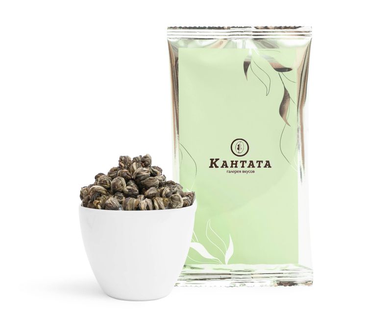 «Жемчужина дракона», также известный как Моли Лун Чжу – это высококачественный китайский зеленый чай из провинции Гуанси, уезд Хэнг, натурально ароматизированный жасмином. Для его производства требуются особое мастерство и терпение. Собранный в начале весны, умело скрученный в форму жемчужины, этот чай проходит сложный процесс ароматизации цветочными лепестками. Нераскрывшиеся бутоны жасмина, которые были собраны ранним утром, везут на фабрику и смешивают с готовым зеленым чаем. В течение 8-10 часов чай впитывает аромат нежных лепестков, затем они отсеиваются, им на смену добавляется свежая партия цветов. Этот процесс повторяется 4 раза.