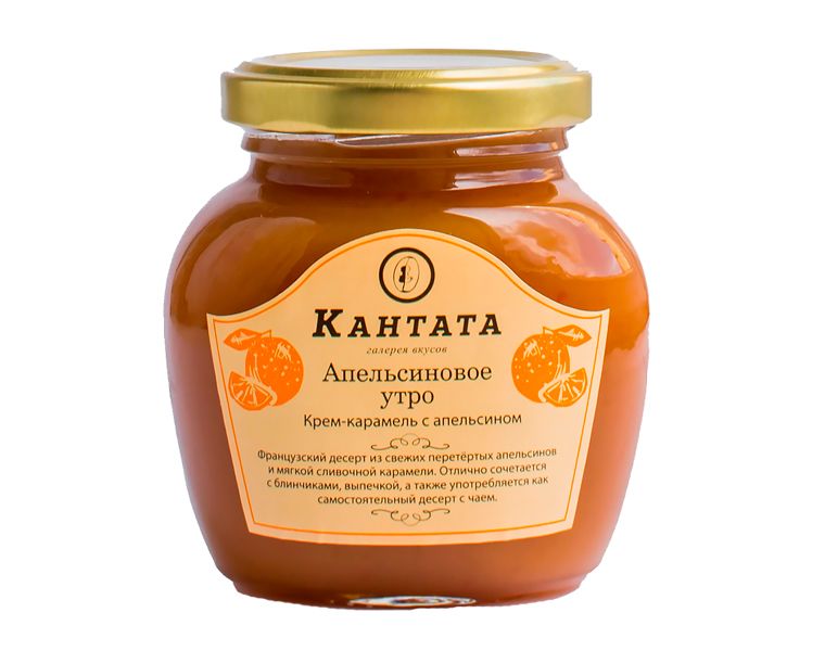 Крем-карамель «Апельсиновое утро» изготовлена по французским рецептам. Небольшое количество гималайской розовой соли пикантно оттеняет вкус апельсина, обогащая минеральный состав этого десерта.Мягкая консистенция лакомства позволяет намазывать его на хлеб и тосты, создавая вкусные бутерброды для завтрака. Также всего несколько ложек крем-карамели превращают классический пломбир в неповторимый десерт.