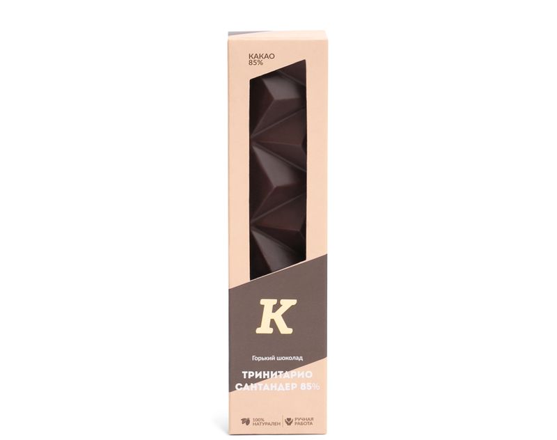 Состав: темный шоколад (какао тертое, тростниковый сахар, какао-масло, эмульгатор: соевый лецитин, натуральный ароматизатор: ваниль). Содержание какао-продуктов — не менее 85%.Может содержать следы продуктов, вызывающих аллергию.
