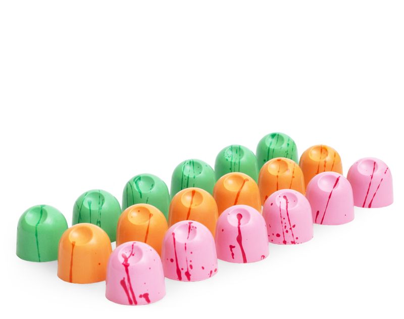 Палитра корпусных конфет «Самоцветы» состоит из трех оттенков: цвет утренней зари, цвет солнца и цвет морской волны. Три цвета — это три разных вкуса, каждым из которых можно разукрасить свое настроение.