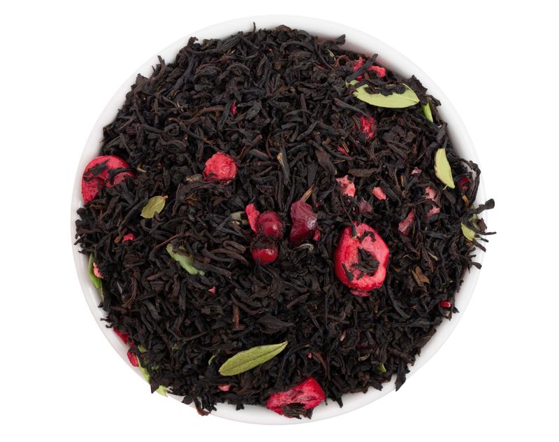 Индийский черный чай Ассам в основе купажа прекрасно гармонирует своей насыщенностью со свежим ягодным вкусом брусники.