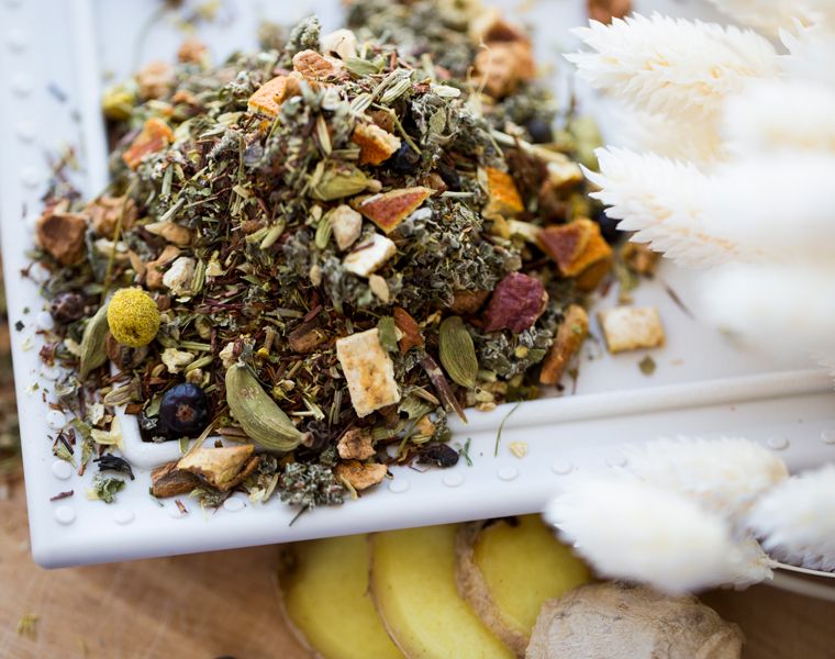 Состав: зелёный чай, кусочки яблока, ройбос, имбирь, корица, листья малина, цедра апельсина, манжетка, фенхель, ромашка, натуральный ароматизатор, гвоздика, кардамон, чёрный перец, можжевельник, зверобой, гусиная трава.