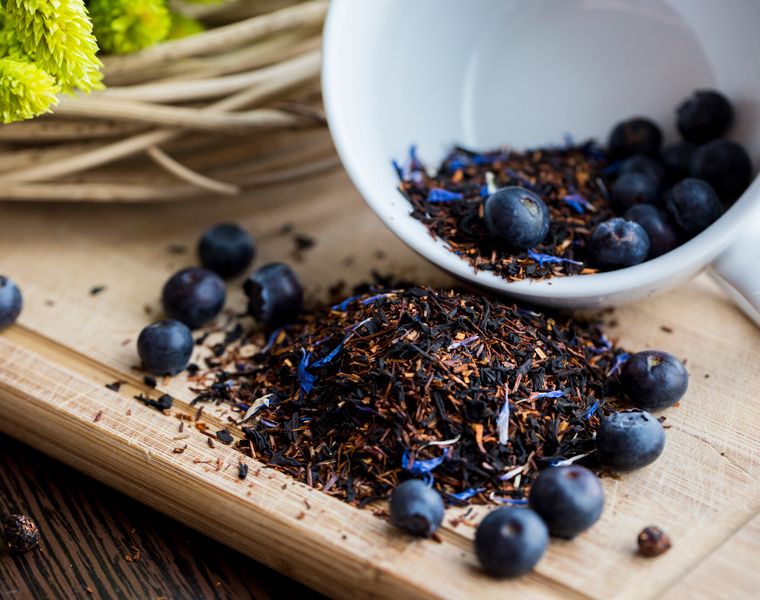 Состав: чёрный чай, ройбос, ароматизатор, черника, василёк.