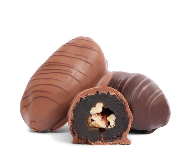 Сладость фиников с нежным карамельным оттенком превосходно сочетается с молочным и темным шоколадом, а особые сливочные нотки лакомству придает орех пекан. Польза этих изысканных десертов очевидна, ведь в их состав входят лучшие финики. Богатые витаминами и минералами, они являются природными источниками энергии и питательных веществ.