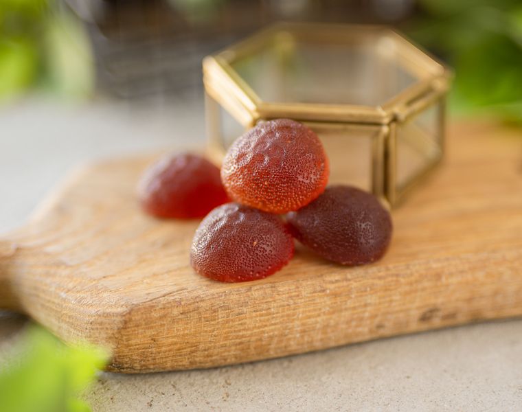Аромат и форма этого мармелада манят откусить кусочек. Насыщенный ягодный вкус напоминает только что сорванную с грядки и перетертую с сахаром клубнику.