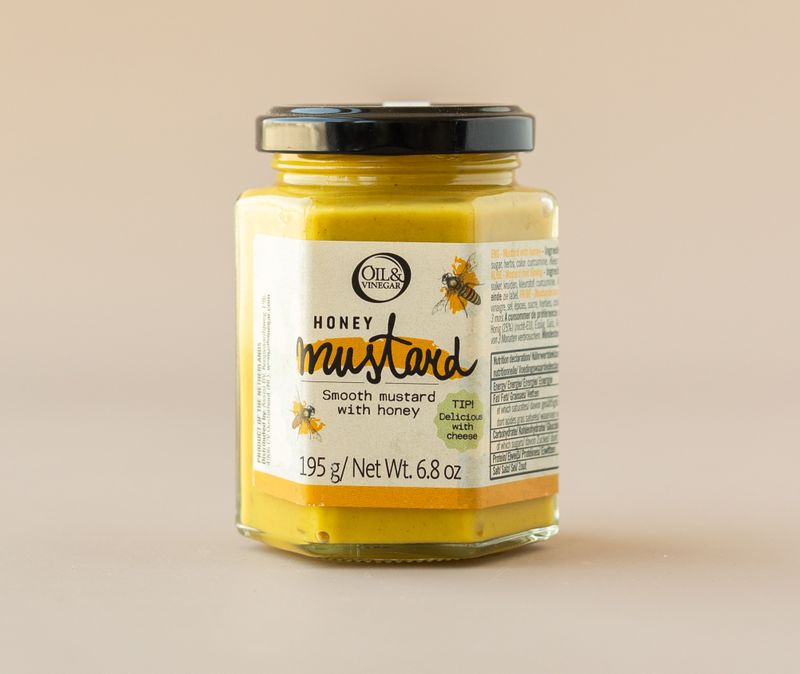 Медовая горчица от Oil&Vinegar изготовлена из цельных семян горчицы и смешана с натуральным мёдом. Соус сохранил в себе все полезные качества этих двух продуктов, отлично подходит к козьему сыру, бекону.