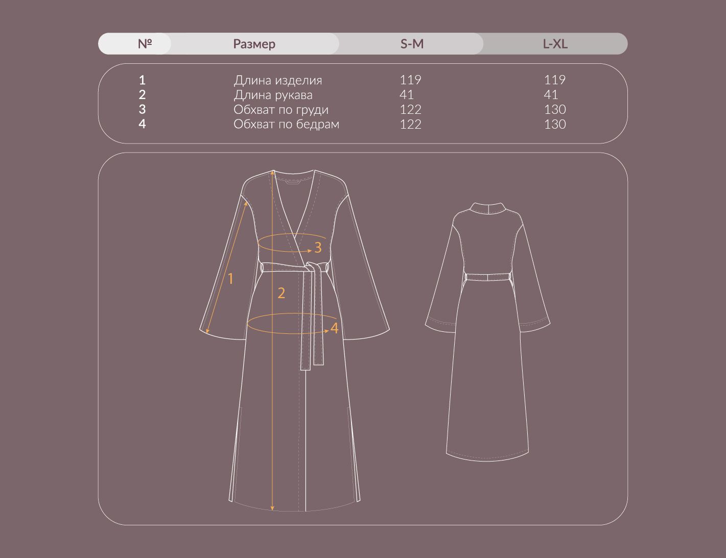 Халат выполнен из льна высокого качества без добавления синтетических материалов, он имеет широкие рукава-кимоно и элегантный пояс. Фасон халата универсален, он выполнен с учетом всех типов фигур и особенностей.