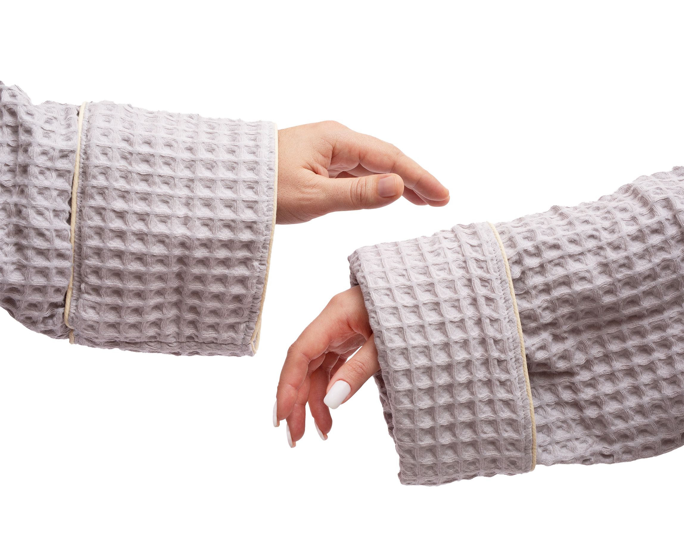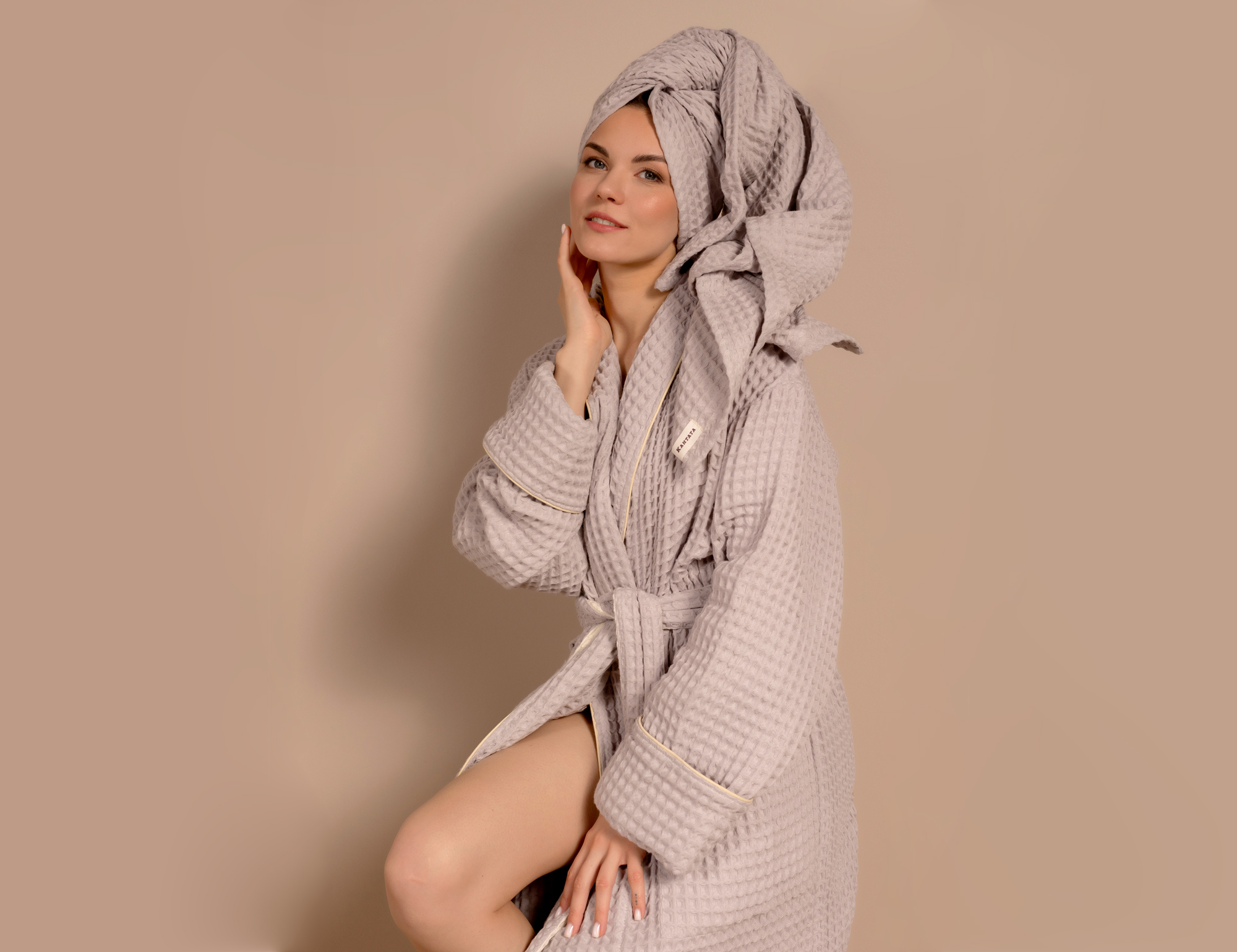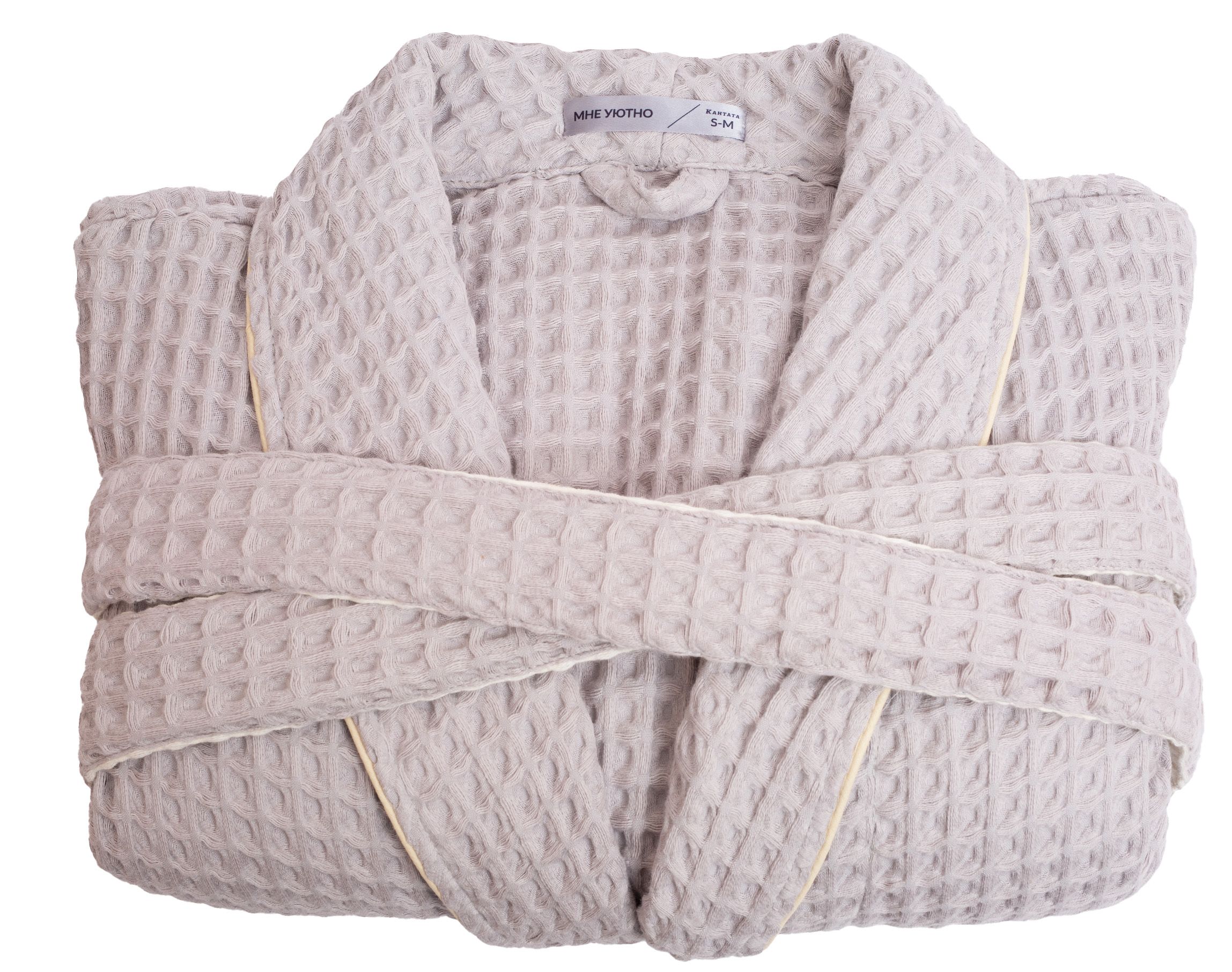 Уютный халат, в который так приятно завернуться после душа! Его свободный крой не стесняет движений, а мягкая воздушная «вафля» приятна к коже.