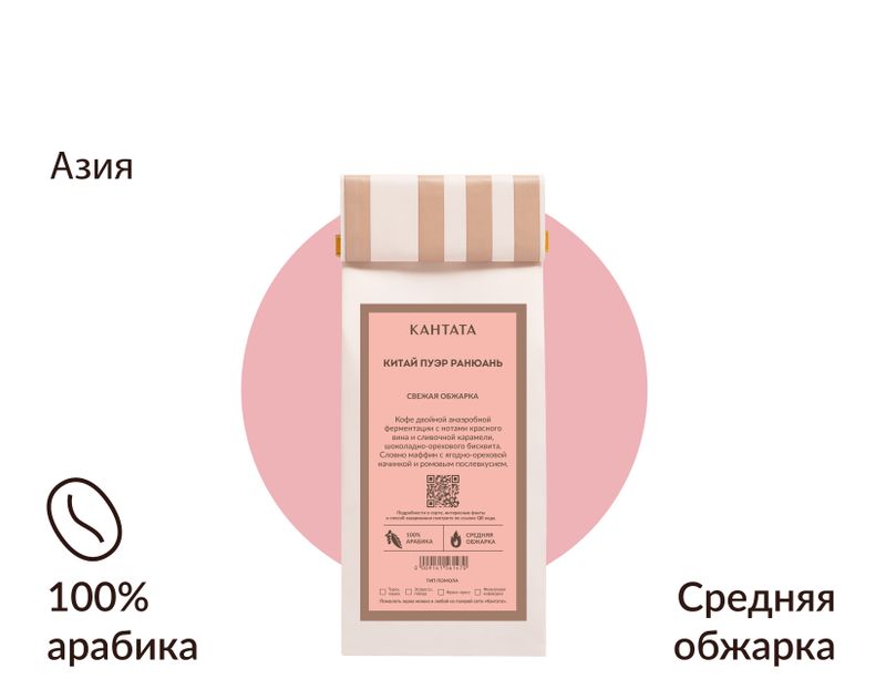 Китай Пуэр Ранюань – ароматный кофе с оттенками красного сухого вина, сливочной карамели, во вкусе напитка ощущаются кисло-сладкие ноты темных ягод, шоколадно-орехового бисквита. Они переходят в букет из ароматов рома, черного винограда и жареного фундука.
