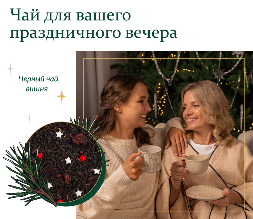 Состав: индийский черный чай Ассам, ягоды вишни, кондитерские дропсы (сахарные фигурки), ароматизатор.