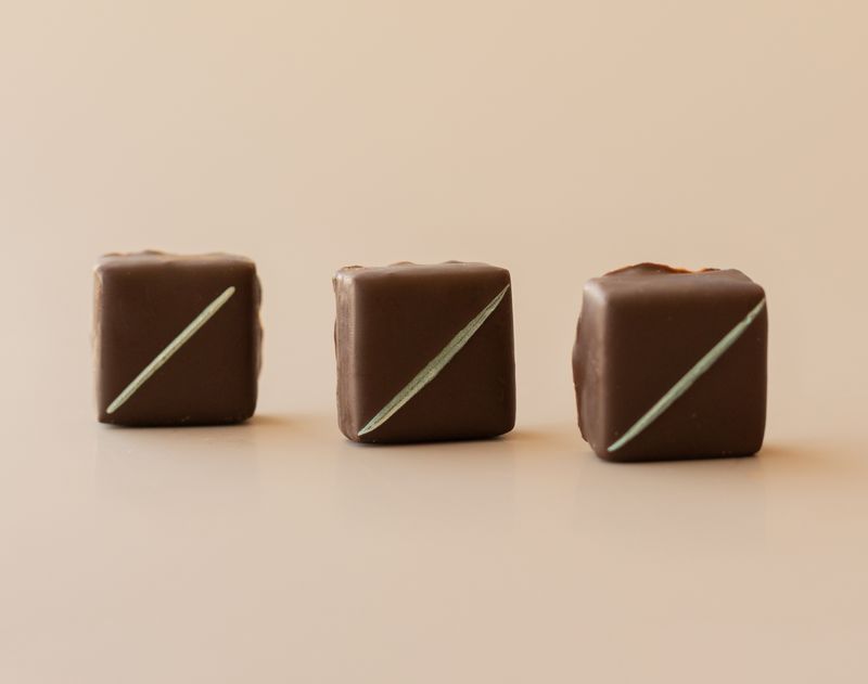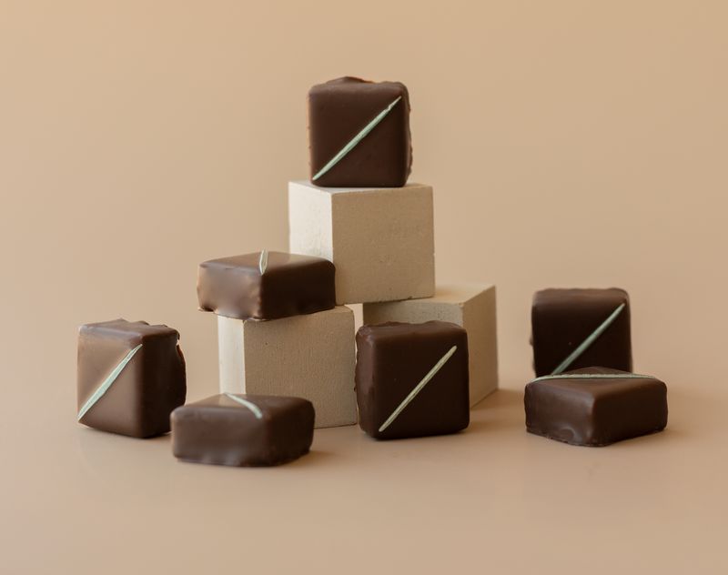 Сочетание темного шоколада и сливочной начинки, в которой основную мелодию вкуса играет свежая мята.