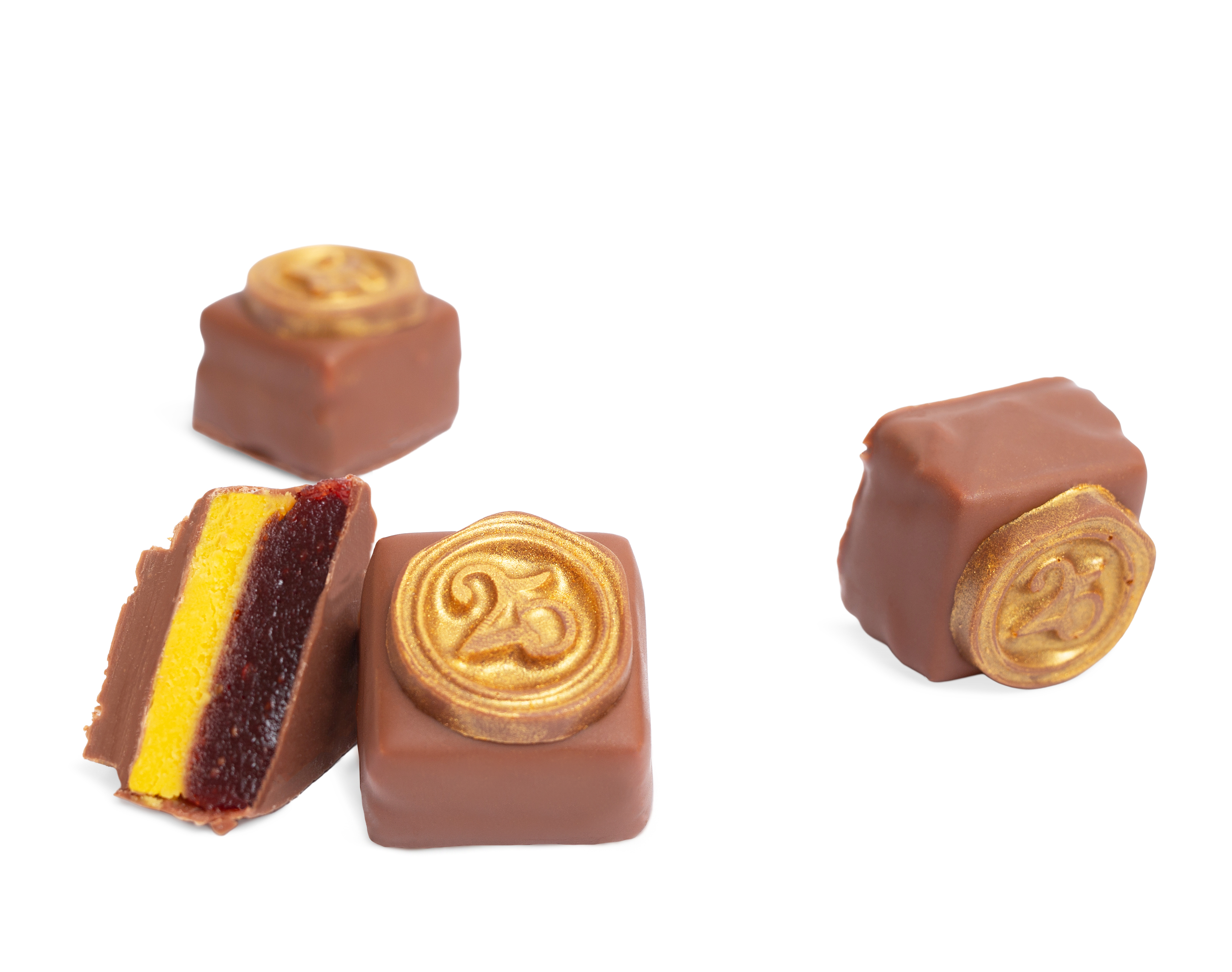 Главный акцент этой конфеты — золотая печать, созданная специально к юбилею Кантаты. С первого укуса раскрывается бархатистый вкус молочного шоколада, а золотой кандурин подчёркивает торжественность и исключительность десерта.
