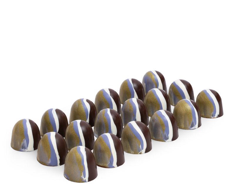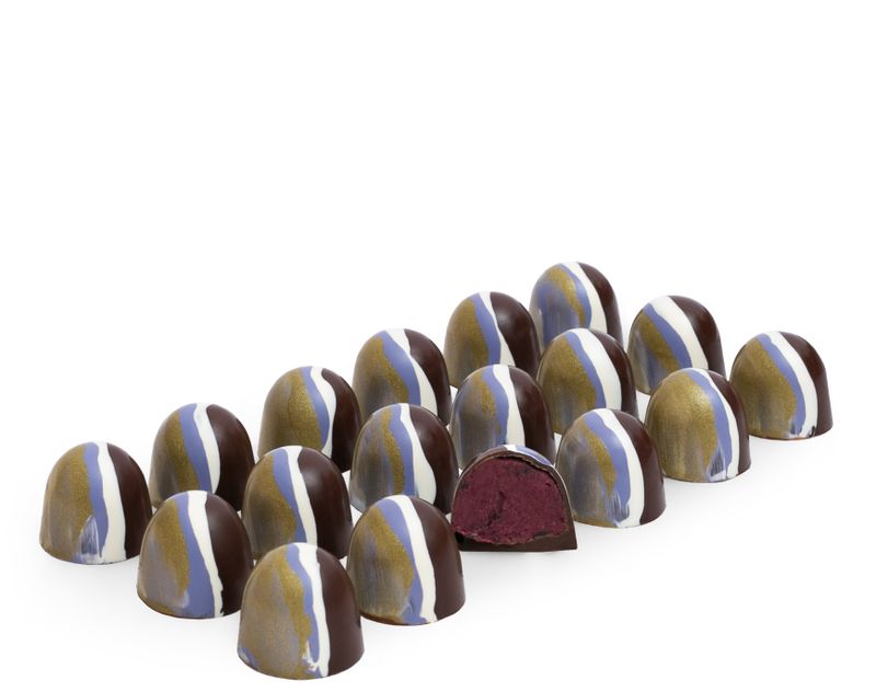 Корпусная конфета из темного шоколада со сливочно-ягодной начинкой из пюре черной смородины, с добавлением ликера «Cassis».